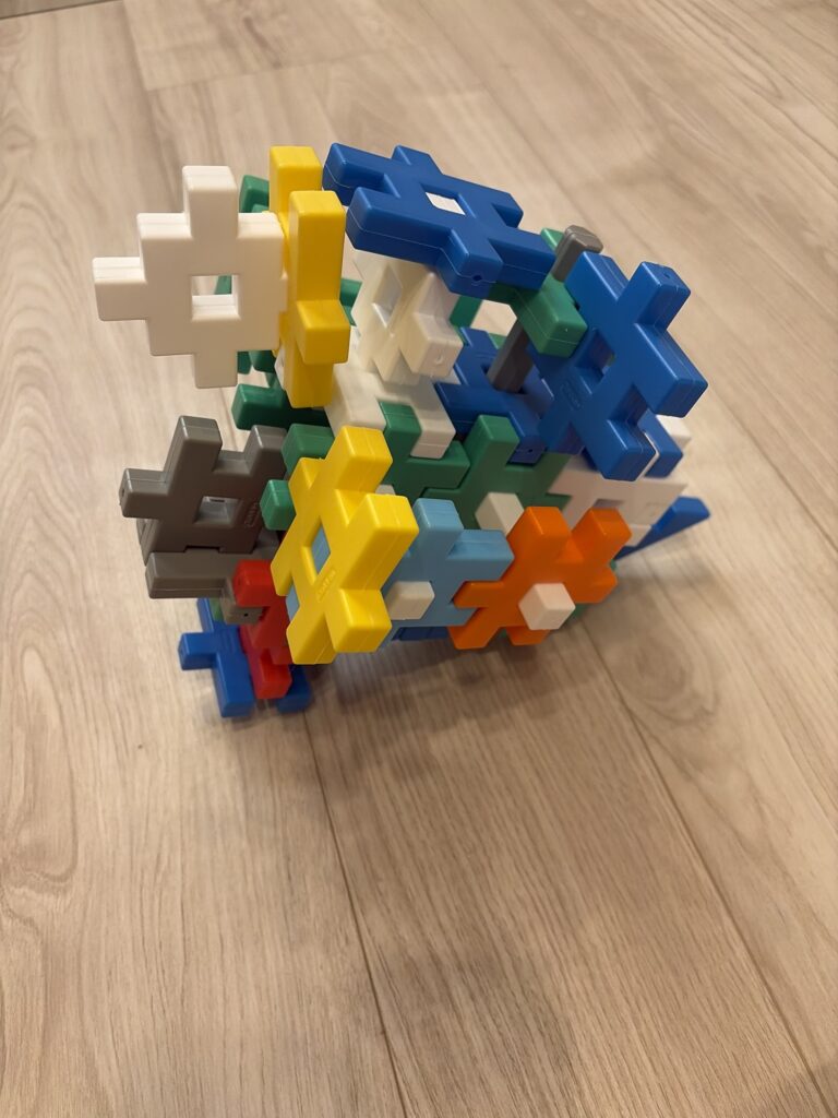 ペタペタ組み合わせるだけだった遊びが、形あるものをイメージして、 「どうやったら立つかな?」 「ここにつけたら倒れないかな?」 と、少しずつ“構造”を意識する遊びに変わっていったように思います。