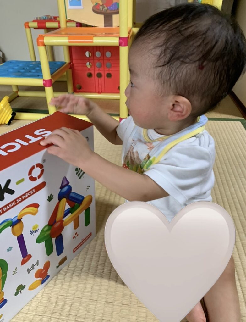 Stick-oは口に入れても大丈夫なので、 「口で確認する → つなげる → 外す」という動きを自然とするようになりました。 今思えば、この繰り返しが“初めての手遊び”だったのかもしれません。