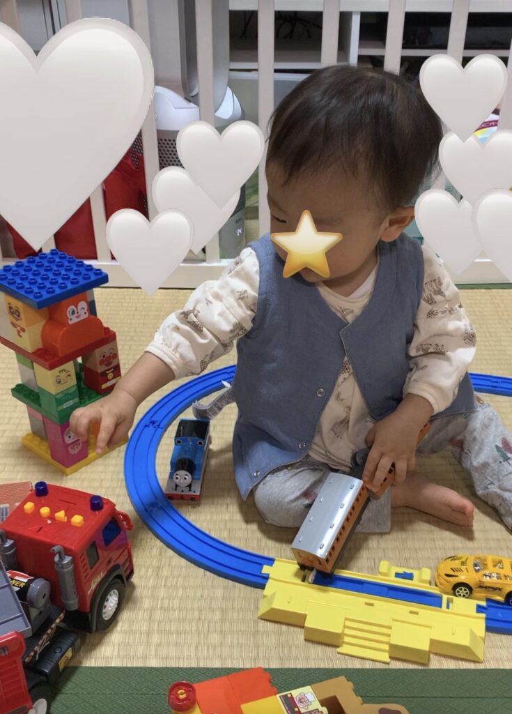 トーマスが大好きでプラレールにもハマっていたので、レールをつないで、アンパンマンと組み合わせて毎日のように夢中で遊んでいました。