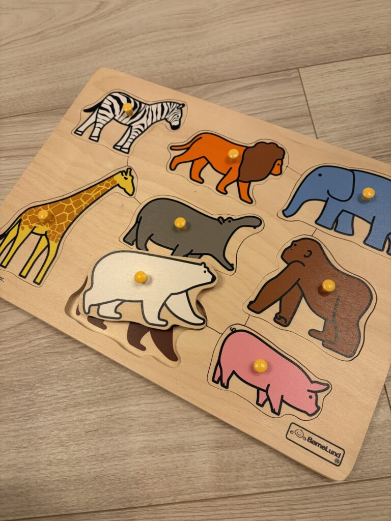 2歳になると、パズルにハマりはじめました。 最初は形あわせパズルから、だんだんと絵合わせパズルができるように。